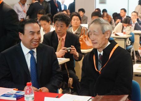 (上圖:木糖醇之父尤新教授(右)、禹城市委書記張安民(左)親切交談)