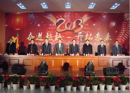 市領導劉之榮、蔡光華,集團領導王星云、趙光輝、秦加利、田強、孫魯、李玉斌在主席臺就坐。集團2012年度模范黨員、先進標兵、先進中層、先進個人,技改、專利申報及合理化建議人員,部分骨干人員,職工代表及來賓計400余人參加大會。