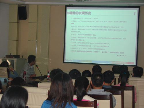 培訓(xùn)課上,研發(fā)部部長邱學(xué)良及戰(zhàn)略市場部部長喬曉寧分別就木糖醇基本知識和國內(nèi)外應(yīng)用的變化情況做了詳細介紹,并結(jié)合實際案例詳細探討了糖醇未來的市場發(fā)展前景。參訓(xùn)人員認真學(xué)習(xí)、記錄,并就相關(guān)問題和主講人進行了交流、探討。最后,董事長王星云發(fā)表總結(jié)講話,他希望每一位福田員工都能掌握好產(chǎn)品知識,樹立全員營銷意識,為實現(xiàn)“珍惜地球資源,關(guān)愛人類健康”的企業(yè)使命而不懈努力。同時,他著重指出公司現(xiàn)階段的最大目標(biāo)就是要在市場引領(lǐng)、研發(fā)、工藝、技術(shù)、品質(zhì)和成本控制等方面保持持續(xù)改進和創(chuàng)新,用一流的品質(zhì)、一流的管理、一流的服務(wù)捍衛(wèi)行業(yè)第一的高地。而實現(xiàn)這樣的目標(biāo)與生產(chǎn)、營銷、研發(fā)等團隊的密切配合,聯(lián)合作戰(zhàn),發(fā)揮軍團作戰(zhàn)的集成優(yōu)勢密不可分,同時更需全員為實現(xiàn)此目標(biāo)表現(xiàn)出超凡的決心、意志和信心。