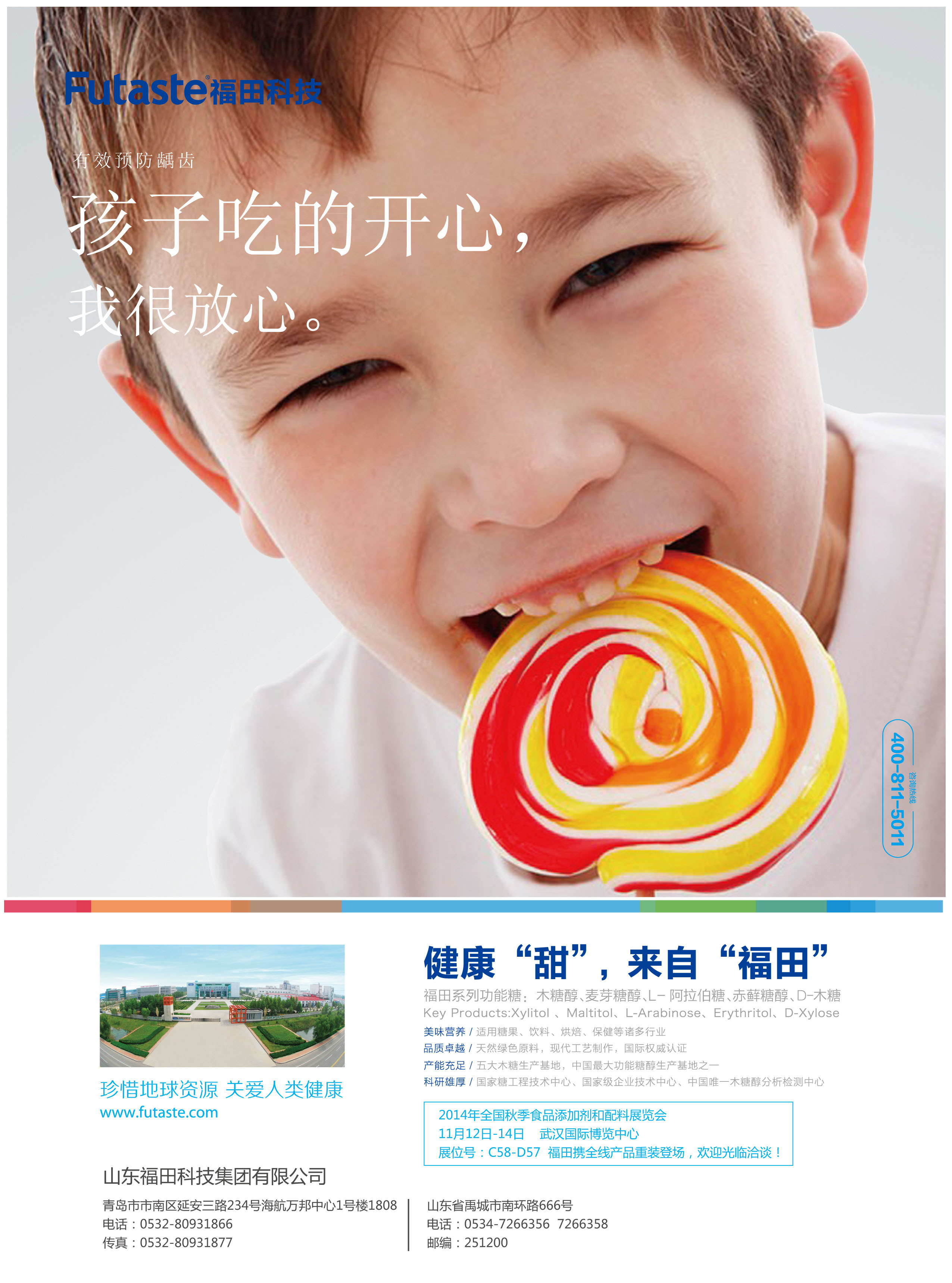 作為糖醇企業(yè)的優(yōu)秀代表,福田一如既往地支持FIC,力爭在FIC的平臺上做大健康產(chǎn)業(yè)。本屆展會,福田將重點(diǎn)展示新產(chǎn)品、新技術(shù)、新應(yīng)用,與新老客戶及專業(yè)觀眾面對面交流溝通,直觀展示企業(yè)形象、實(shí)力,力求以卓越品質(zhì)吸引國內(nèi)外食品業(yè)界客戶的垂注。
