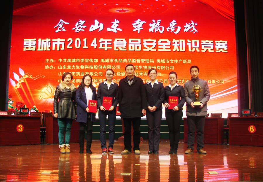 12月22日下午,禹城市2014年食品安全知識(shí)競(jìng)賽決賽在禹城賓館大會(huì)議室隆重舉行。禹城市委書(shū)記、市人大常委會(huì)主任張安民,禹城市委副書(shū)記、市長(zhǎng)張磊及德州市食品藥品監(jiān)督管理局、禹城市宣傳部等部門(mén)領(lǐng)導(dǎo)出席了本次比賽。經(jīng)過(guò)激烈的角逐,福田科技代表隊(duì)不負(fù)眾望,以出色的表現(xiàn)喜得桂冠。