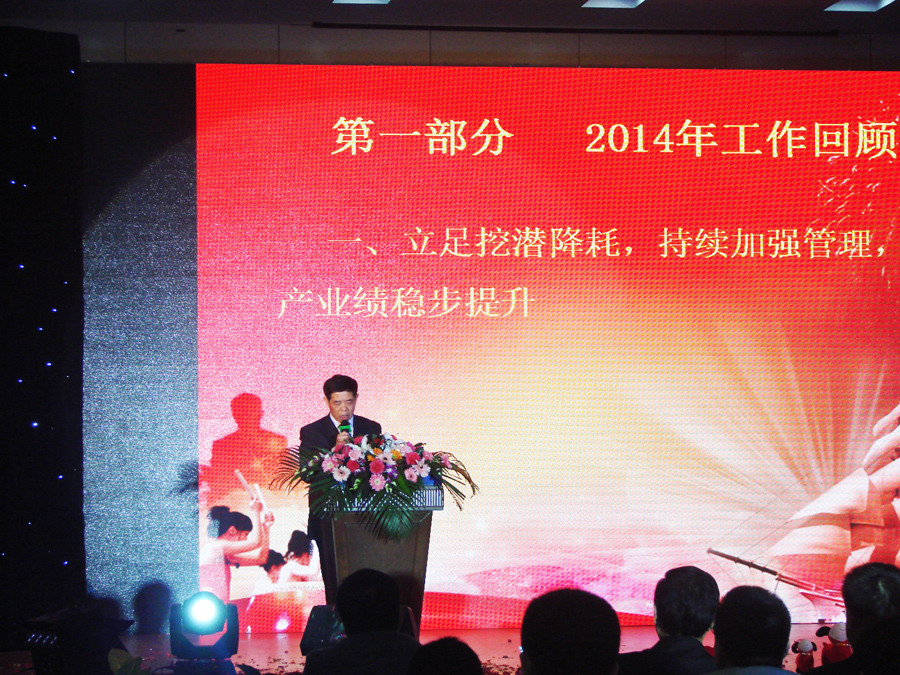 董事長王星云在年會上作了工作報告,全面總結(jié)了2014年集團各項工作,安排部署了2015年的工作任務目標,他指出,集團干部職工要立足崗位、扎實工作,開啟新動力,凝聚正能量,合力打造一流的產(chǎn)品,一流的品牌,一流的管理,一流的團隊。