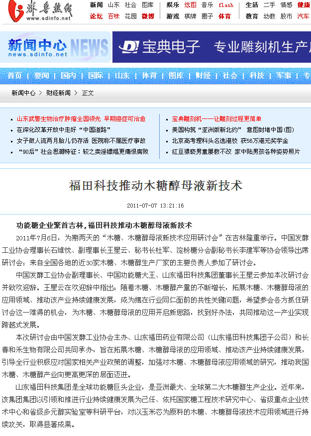 齊魯熱線:福田科技推動(dòng)木糖(醇)母液新技術(shù)