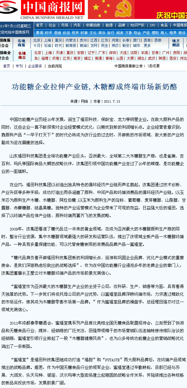 中國(guó)商報(bào)網(wǎng):功能糖企業(yè)拉伸產(chǎn)業(yè)鏈