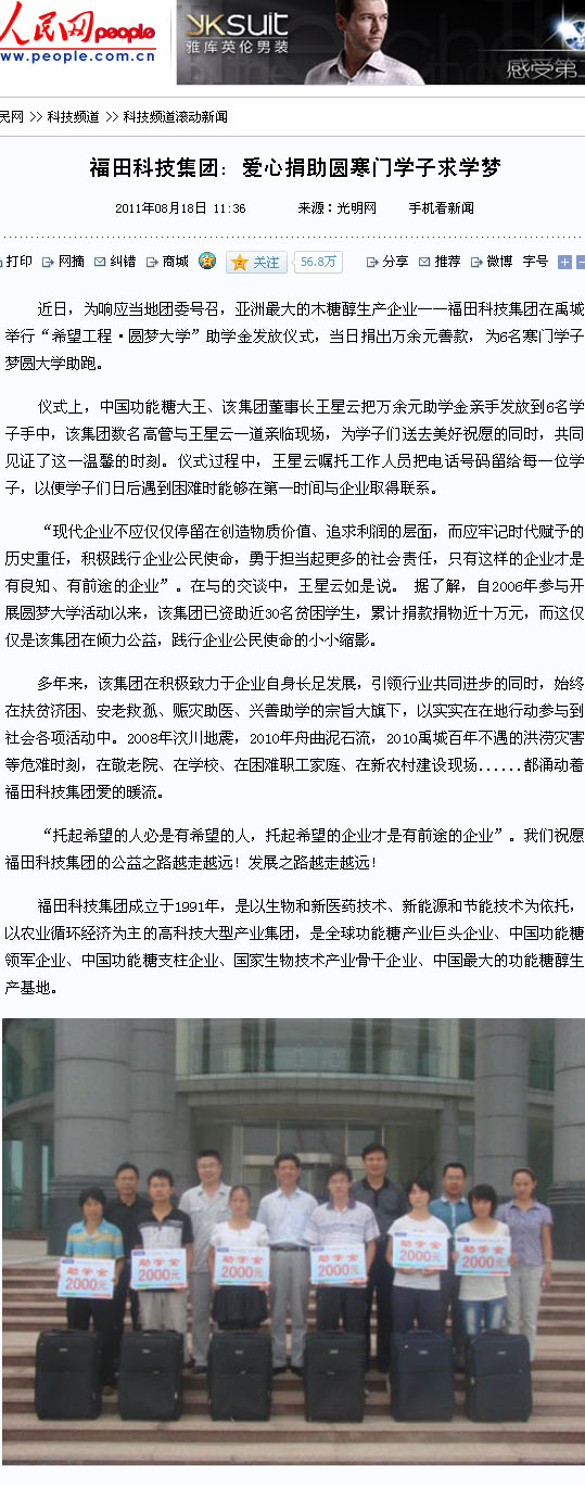 人民網(wǎng):福田科技集團愛心捐助圓寒門學(xué)子求學(xué)夢
